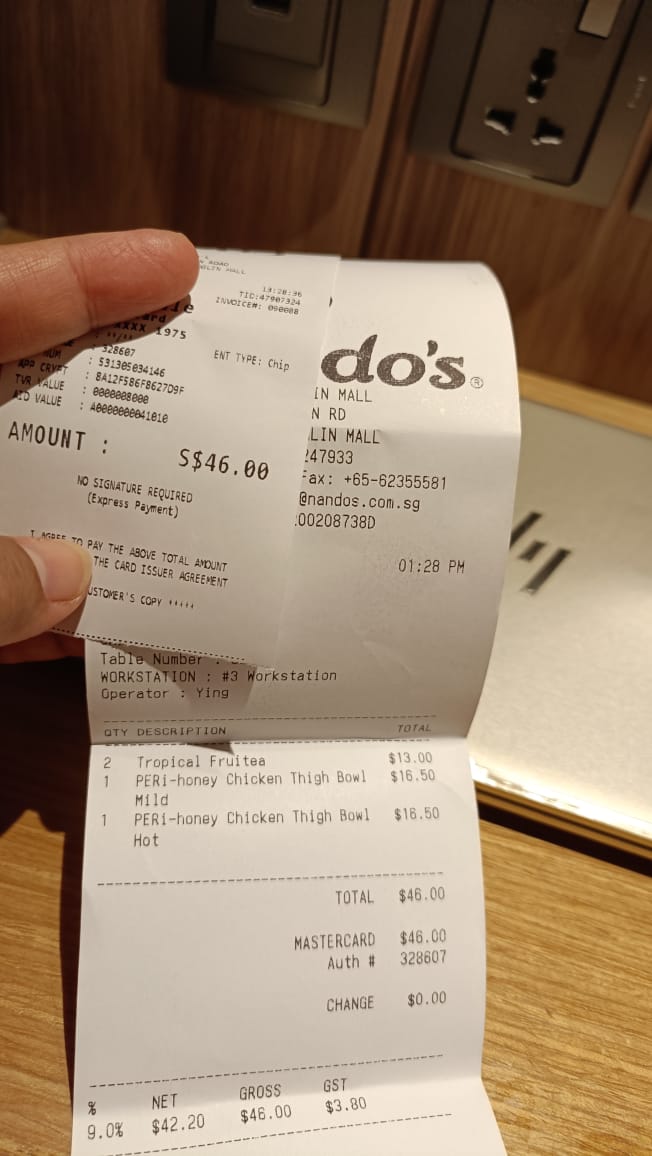 “Waw.. mihil!“, gumamku dalam hati sambil melihat-lihat daftar menu. Rata-rata makanan di restoran ini dibandrol SGD $16.50 atau kira-kira lebih dari Rp. 200 ribu dalam kurs rupiah Rp.13rb. Belum termasuk minumnya. Saya pun memesan salah satu makanan dan minuman seraya mengira-ngira besaran rupiah yang harus saya keluarkan untuk kedua menu tersebut dalam kurs rupiah 🙂
